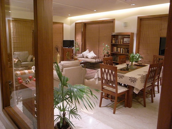 - インドのお部屋にしては天井が低く、日本のお部屋に近い印象があります。